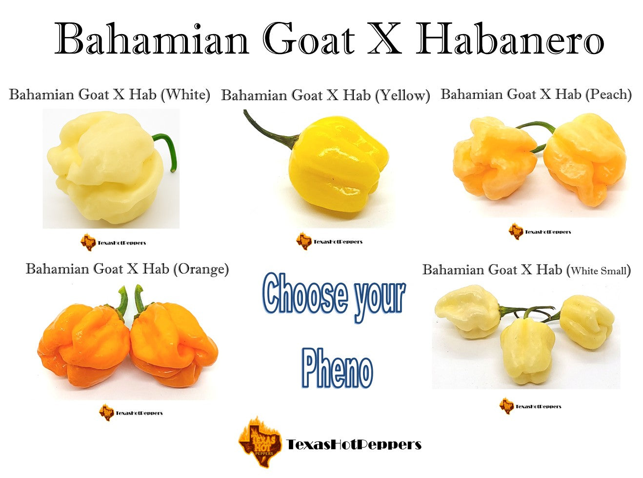 The Bahamian Goat X Habanero has many different phenotypes, we are offering several of them here.  Use the dropdown to select the pheno/variety you'd like.